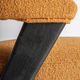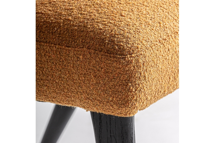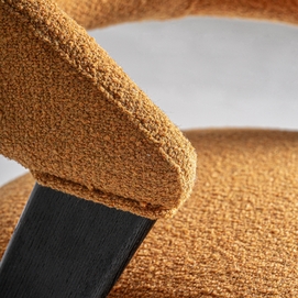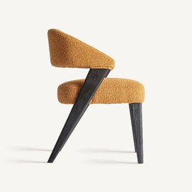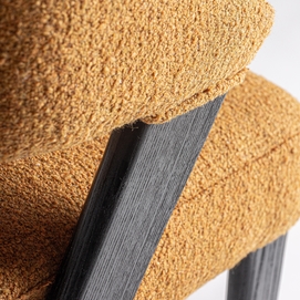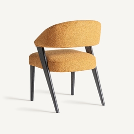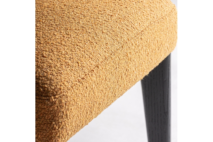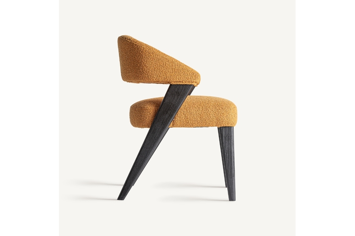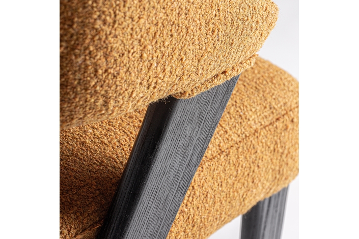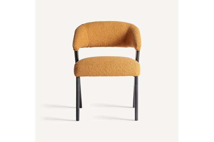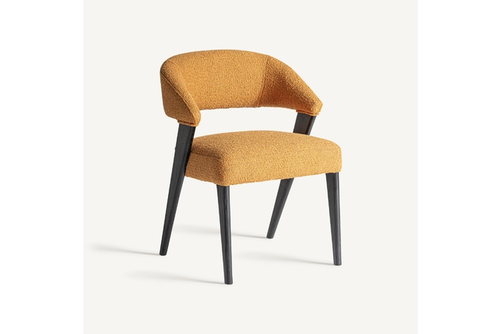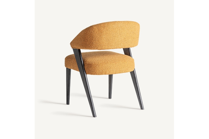 Silla, fabricado en poliéster en color mostaza, combinado con madera roble en color negro y madera de caucho.