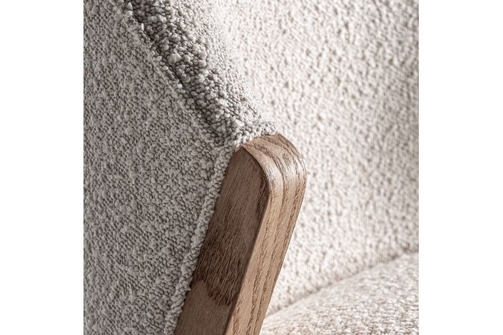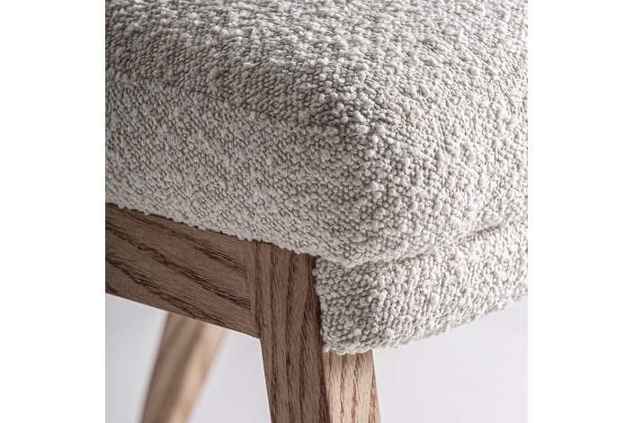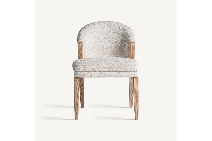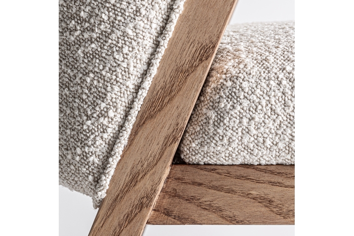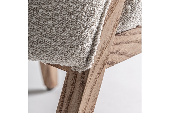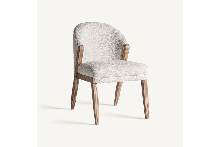 Silla, fabricado en madera de pino en color marrón, combinado con algodón bouclé en color blanco.