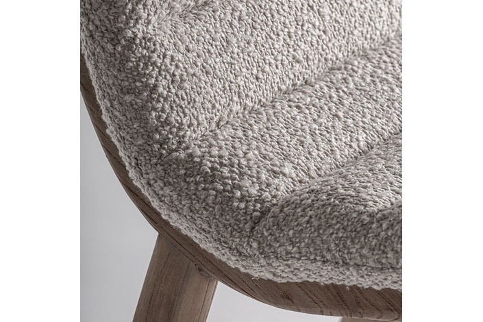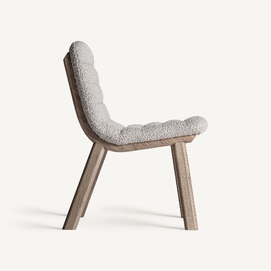 Silla jacquard, de estilo contemporáneo. Fabricado en madera roble, en color marrón claro, combinado con poliéster, en color beige.