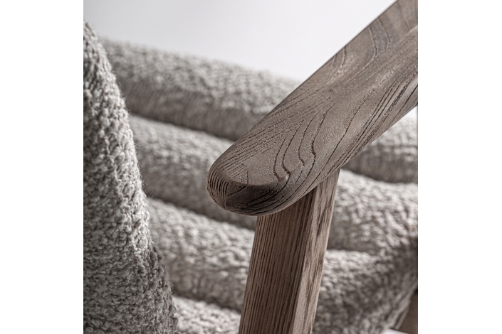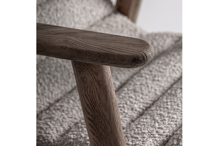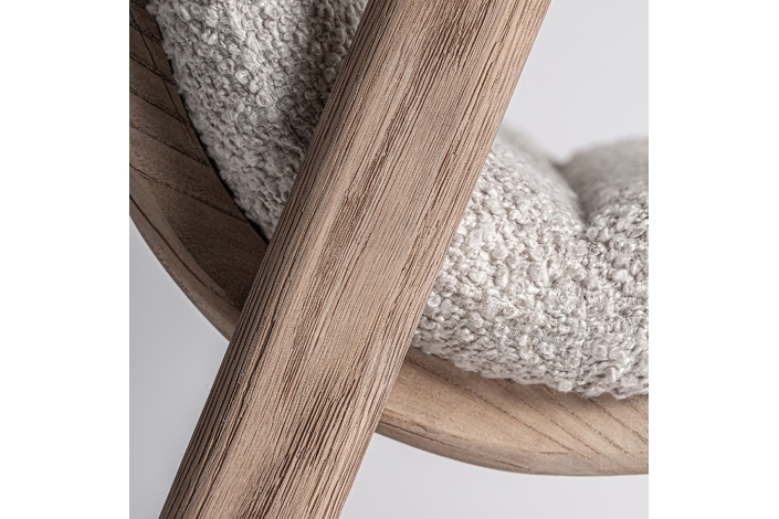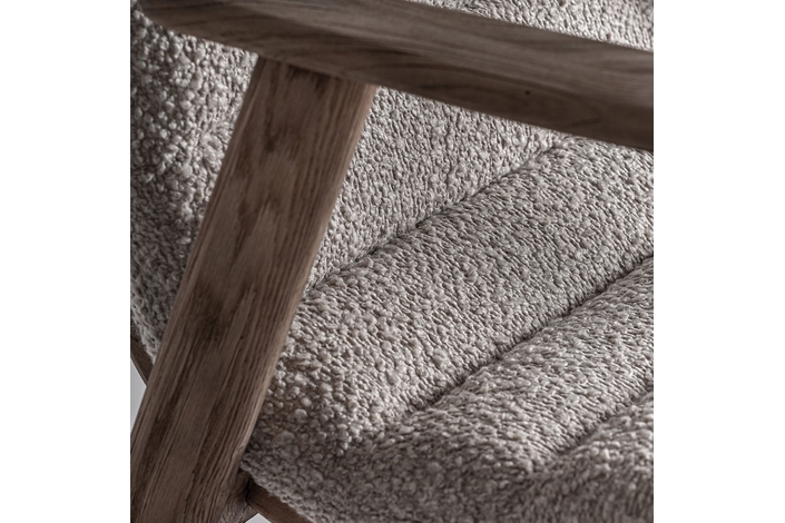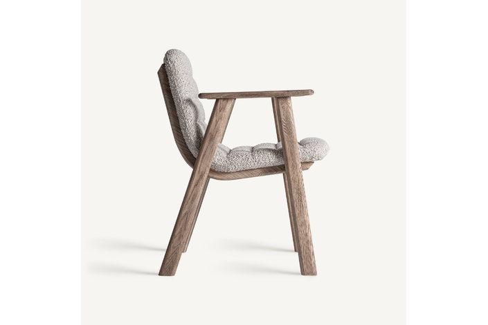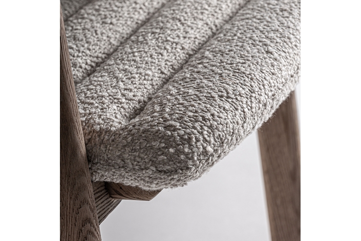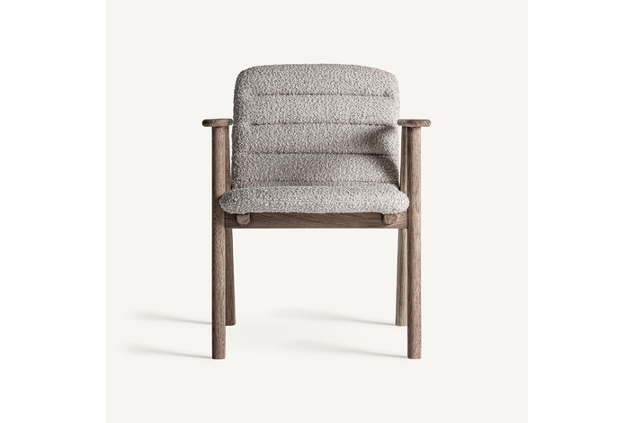 Silla jacquard, de estilo contemporáneo. Fabricado en madera roble, en color marrón claro, combinado con poliéster, en color beige.