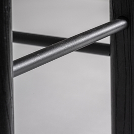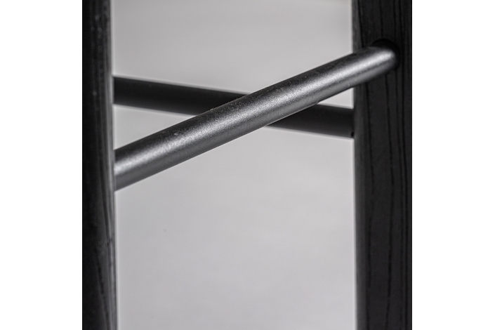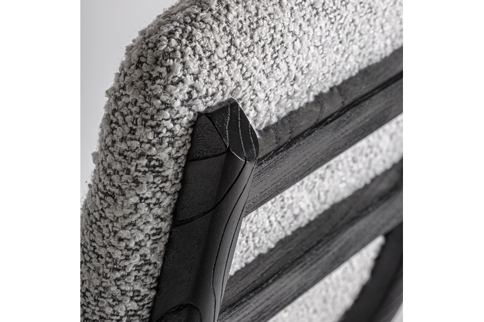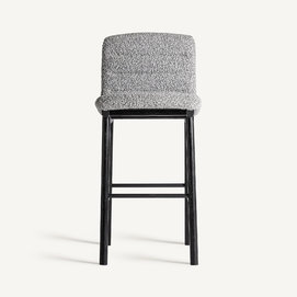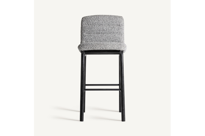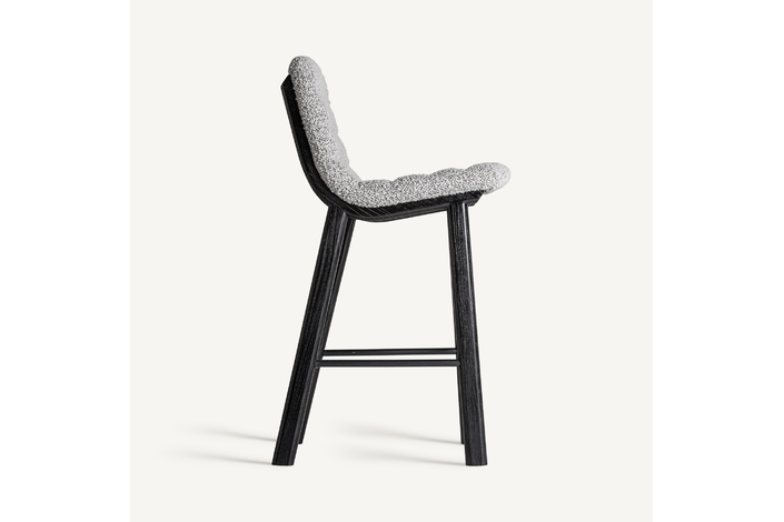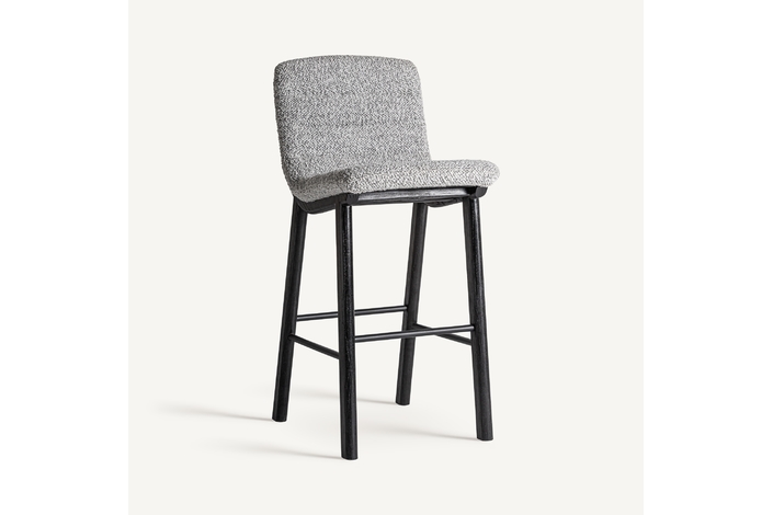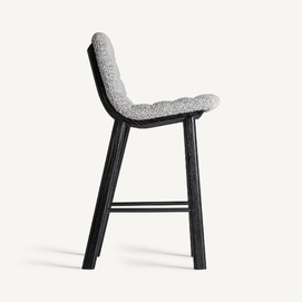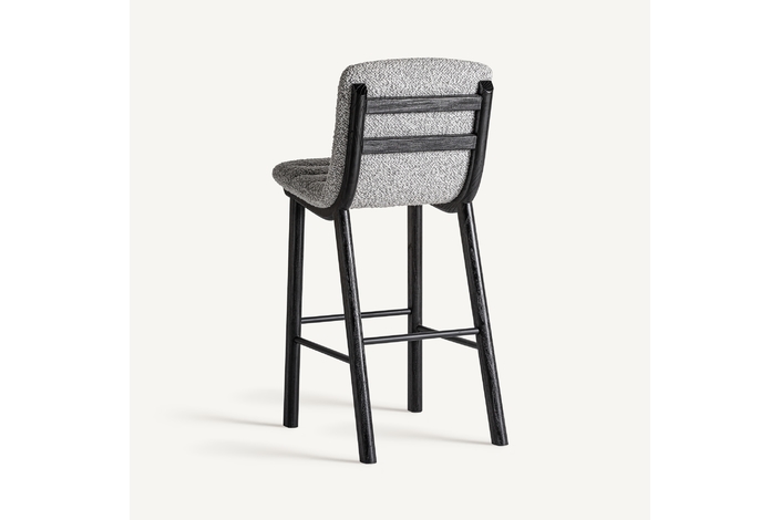 Taburete Jacquard de estilo contemporáneo, fabricado en madera roble en color negro, combinado con poliéster en color gris.