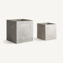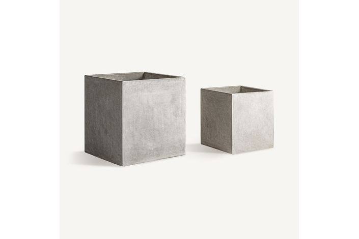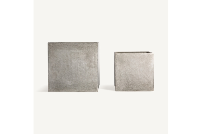 Macetero j/2 de estilo contemporáneo, fabricado en terracota en color gris.