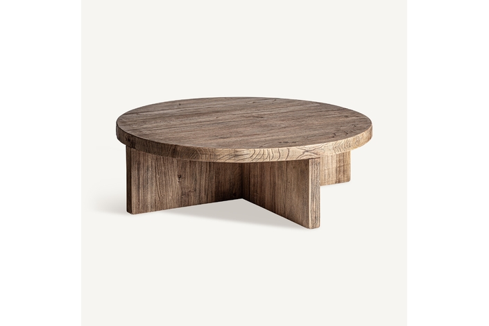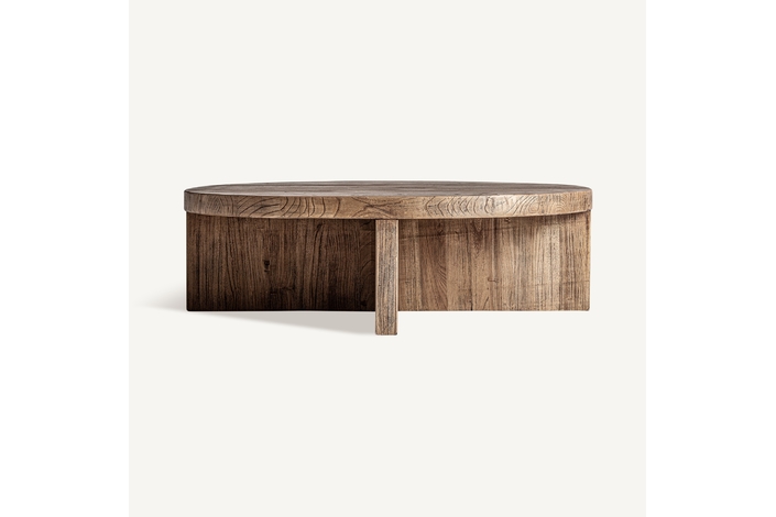 Mesa de centro de estilo clásico, fabricado en madera de olmo en color marrón.
