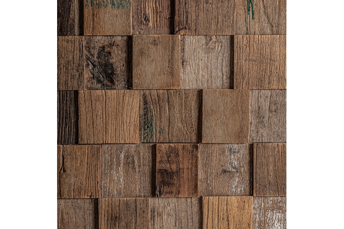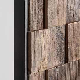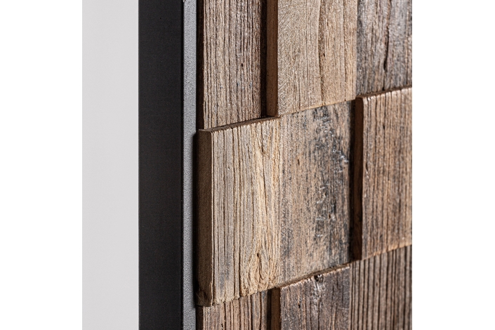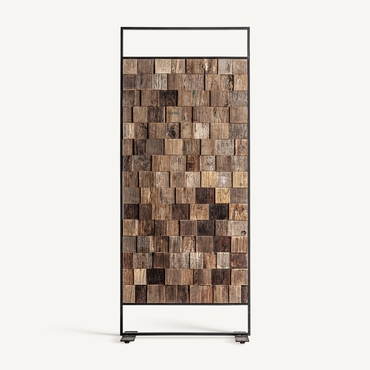 Parabán de estilo étnico, fabricado en madera de olmo en color marrón con acabado envejecido.