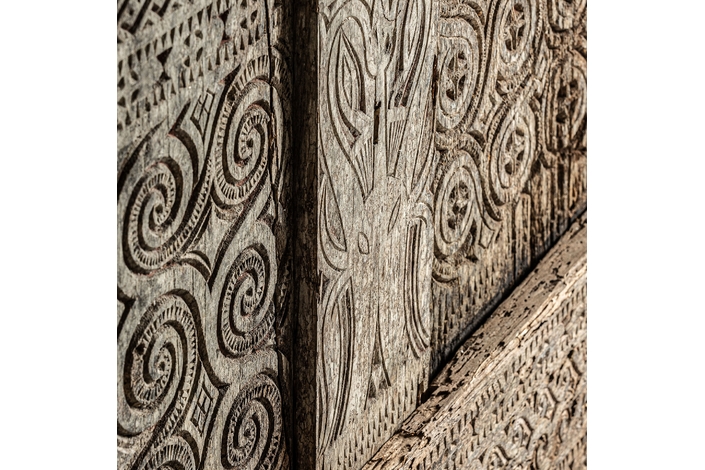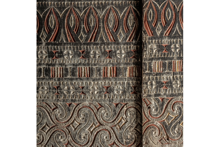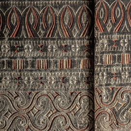 Panel decorativo, en color marrón, de estilo oriental. Fabricado en madera tropical.