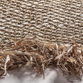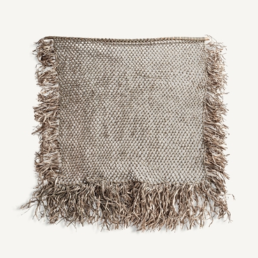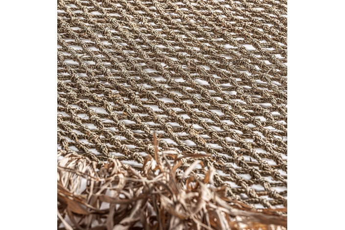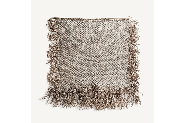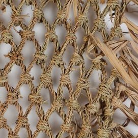Panel decorativo, en color marrón, de estilo boho. Fabricado en rafia, combinado con madera. Producto plegable.