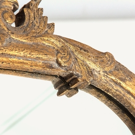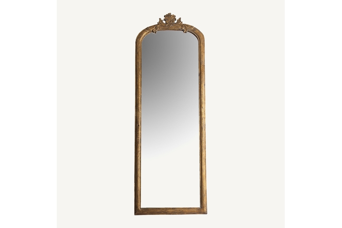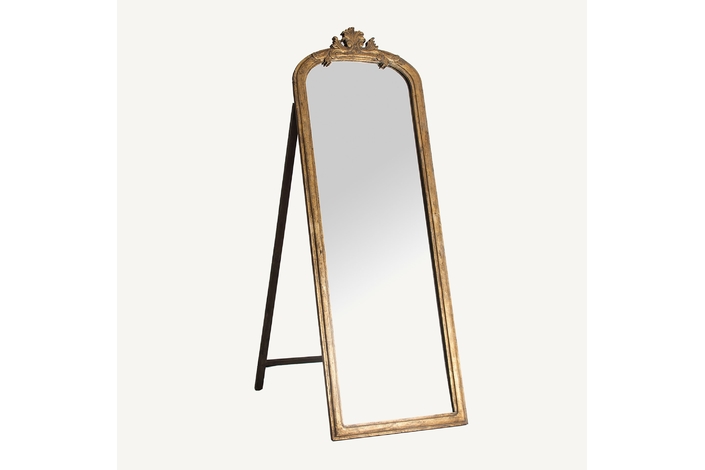 Espejo, en color oro envejecido, de estilo colonial. Fabricado en madera tropical. Espejo de pie. Producto plegable.