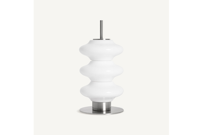 Lámpara de sobremesa, fabricado en cristal en color blanco, combinado con hierro.