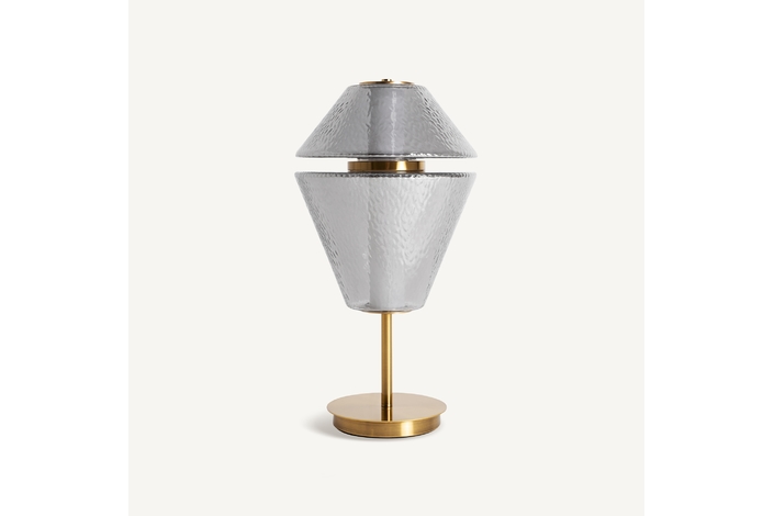Lámpara de sobremesa, fabricado en cristal en color gris, combinado con hierro.