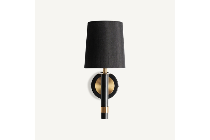 Aplique, fabricado en acero en color negro, combinado con poliéster en color negro en color dorado.