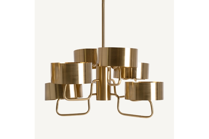 Lámpara de colgar, fabricado en acero en color dorado.