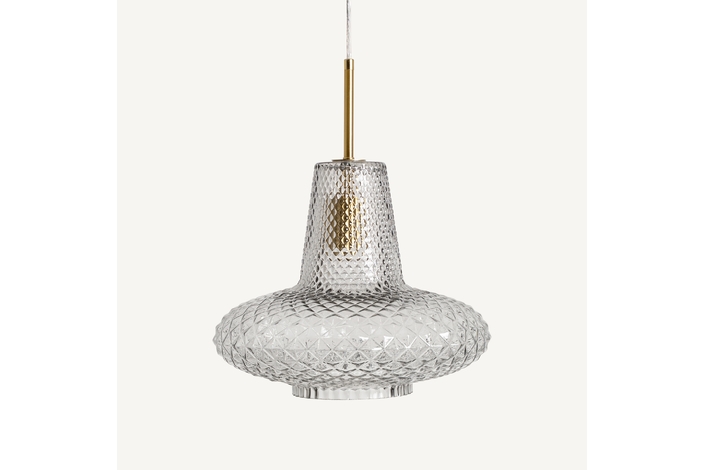 Lámpara de colgar, fabricado en cristal en color gris, combinado con hierro.