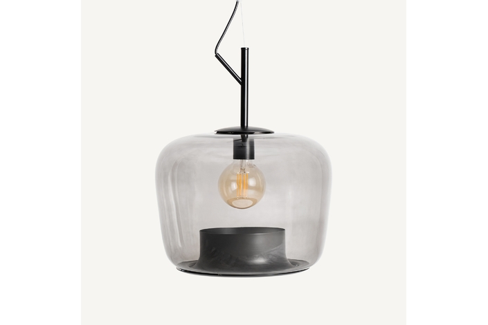 Lámpara de colgar, fabricado en cristal en color marrón, combinado con hierro.