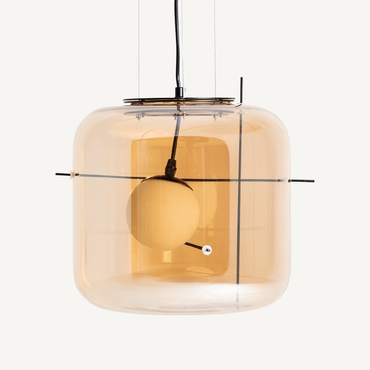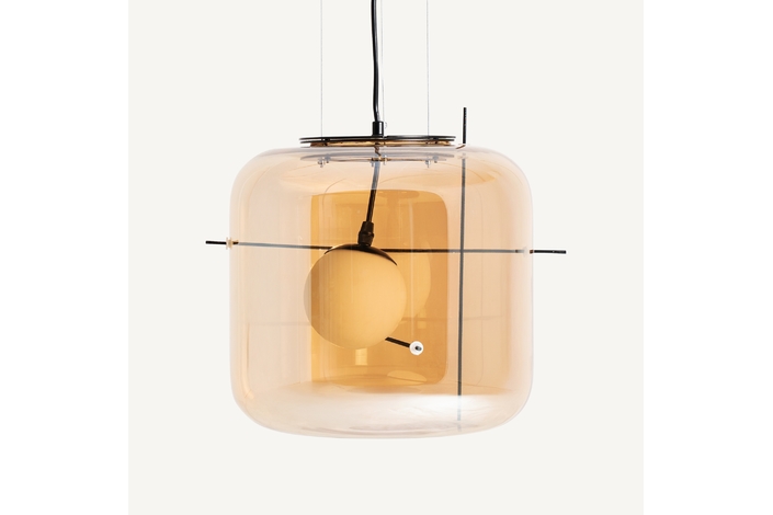 Lámpara de colgar, fabricado en cristal en color marrón claro, combinado con hierro.