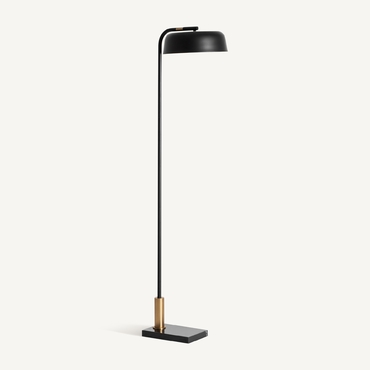 Lámpara de pie, fabricado en mármol en color negro, combinado con acero en color negro en color dorado.