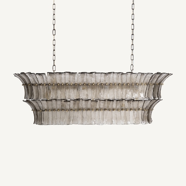 Lámpara de colgar, fabricado en cristal en color gris, combinado con hierro en color bronce.