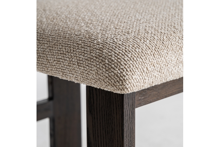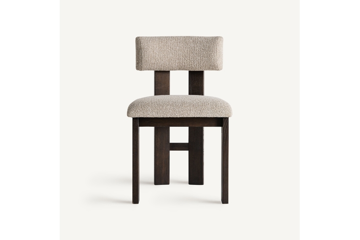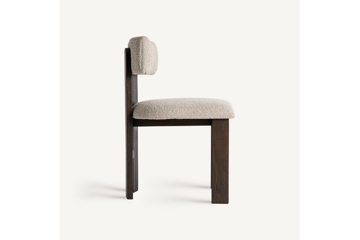 Silla, fabricado en poliéster en color beige, combinado con madera de fresno en color negro y espuma.