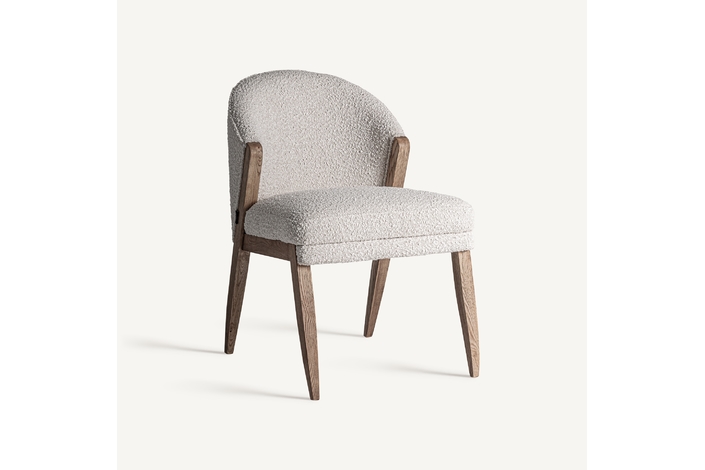 Silla, fabricado en madera de pino en color marrón, combinado con algodón bouclé en color blanco roto.