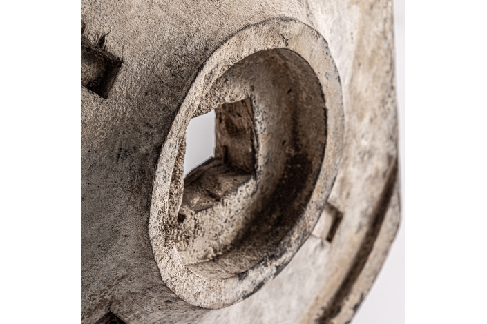 Figura decorativa de estilo étnico, fabricado en madera suar en color tonos en marrón, combinado con hierro en color negro. Producto desmontable.