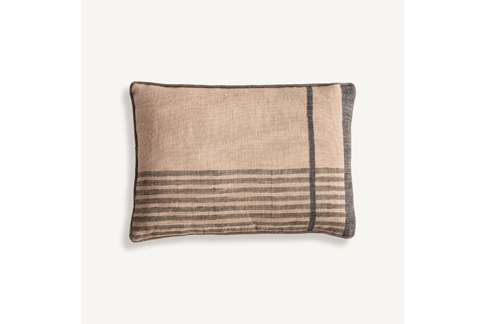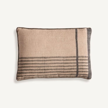 Cojín, fabricado en yute en color beige, combinado con fibra natural en color marrón.