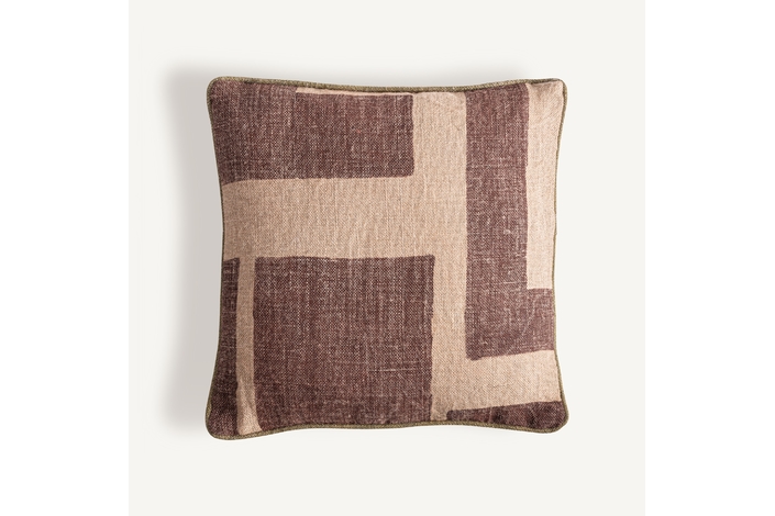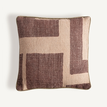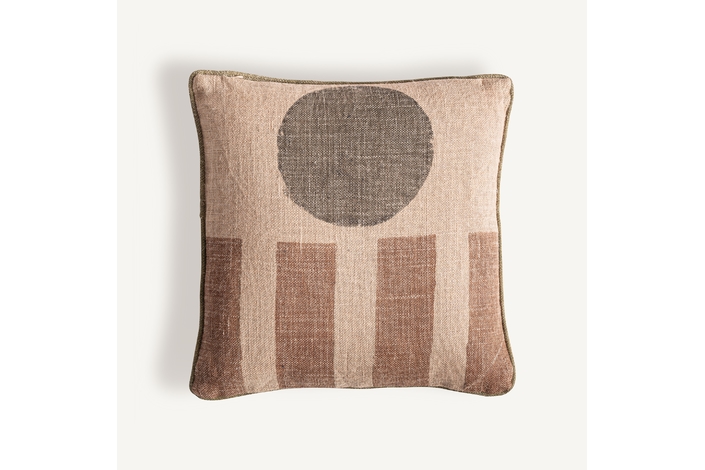 Cojín, fabricado en yute en color beige, combinado con fibra natural en color marrón.