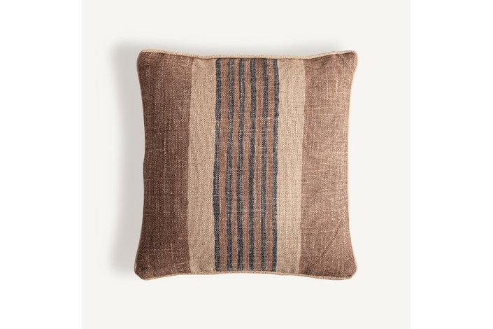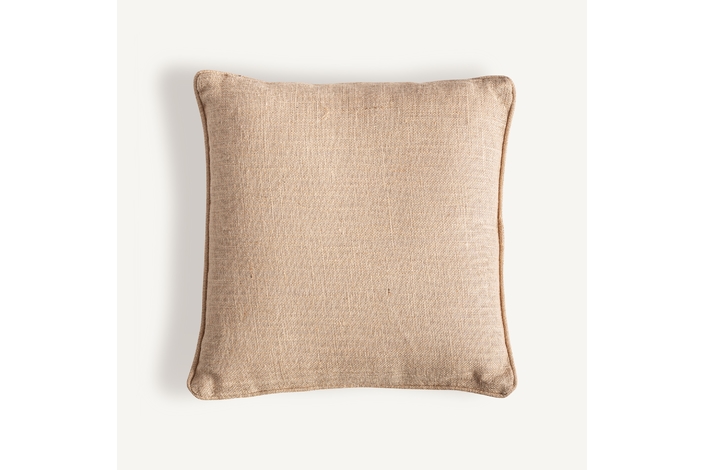 Cojín, fabricado en yute en color beige, combinado con fibra natural en color marrón.