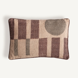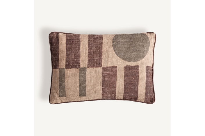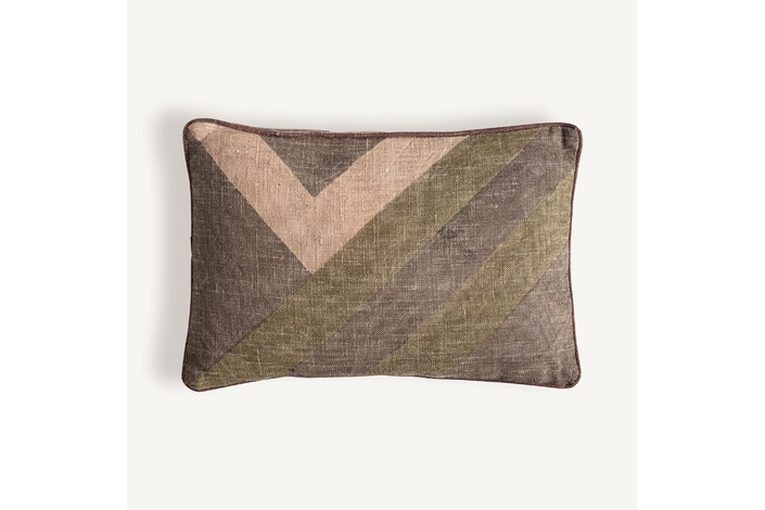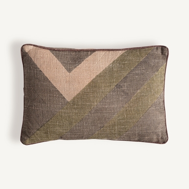 Cojín, fabricado en yute en color beige, combinado con fibra natural en color tonos en verde.