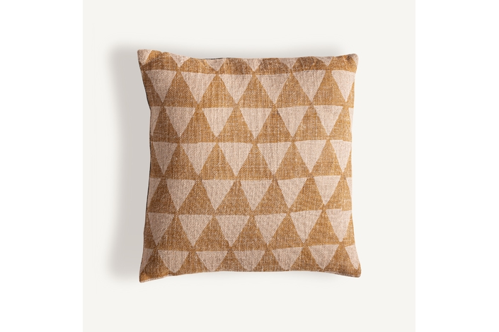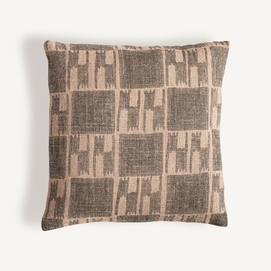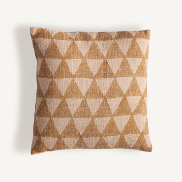 Cojín, fabricado en yute en color beige, combinado con fibra natural en color marrón.