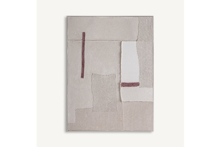 Cuadro, fabricado en lienzo en color blanco roto, combinado con madera de pino en color marrón.