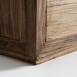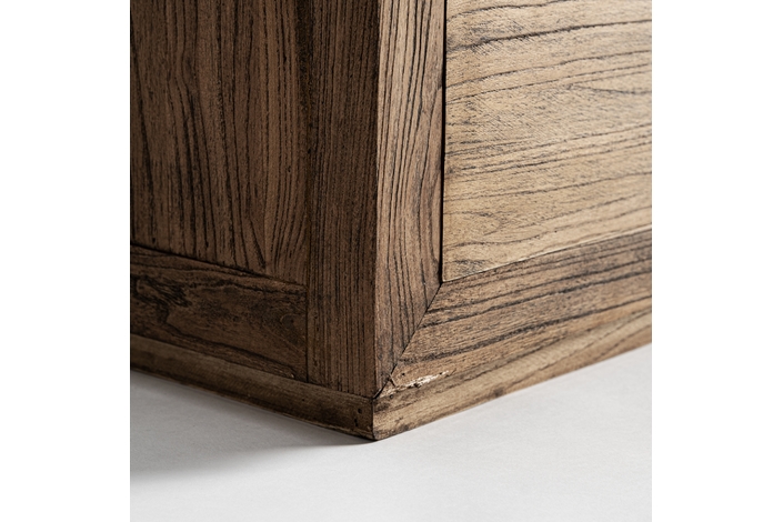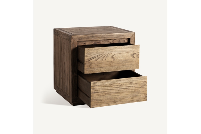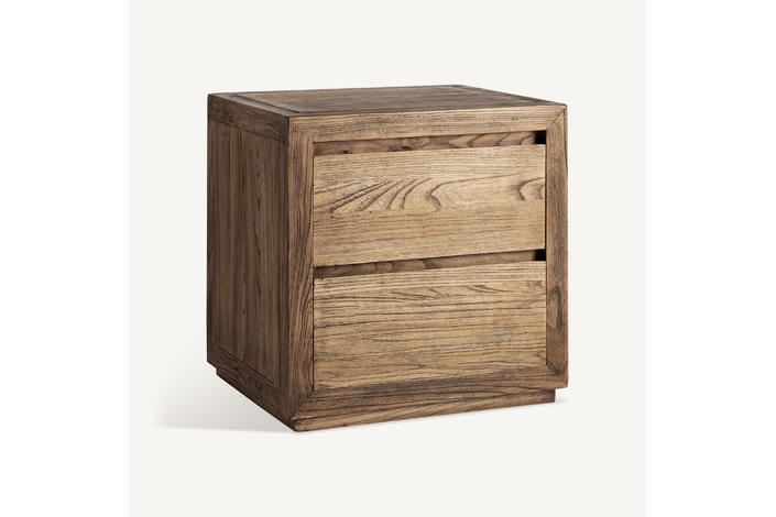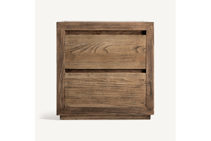 Mesita de noche Norvik de estilo contemporáneo, fabricado en madera de olmo en color marrón.