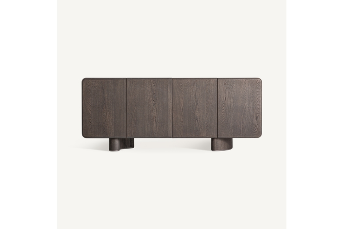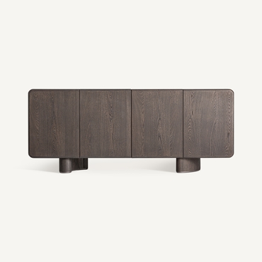 Aparador, fabricado en madera dm en color marrón claro, combinado con madera contrachapada en color marrón.