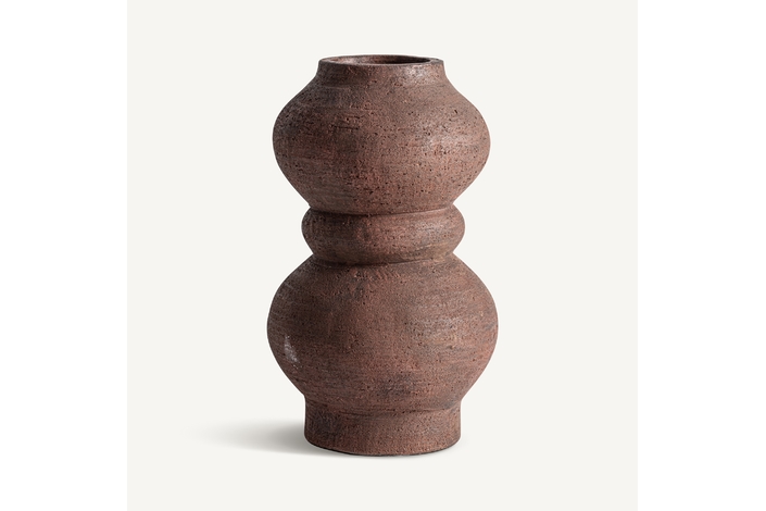 Jarrón Okar de estilo contemporáneo, fabricado en terracota en color terracota con acabado mate.