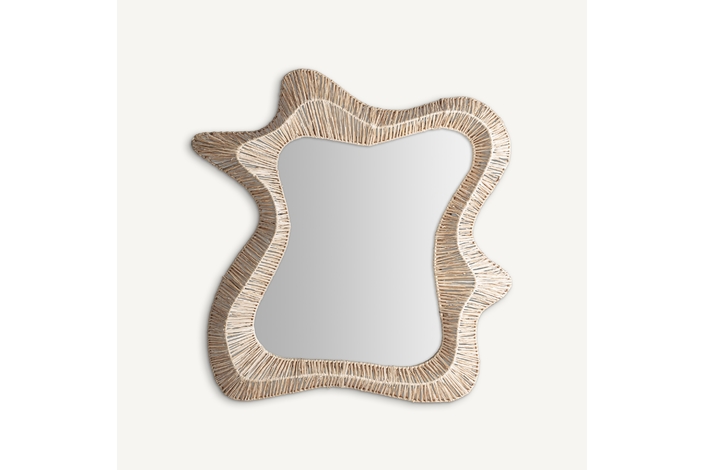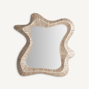 Espejo, fabricado en rafia en color marrón, combinado con espejo y madera dm.