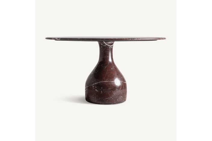 Mesa comedor, fabricado en mármol en color rojo oscuro.