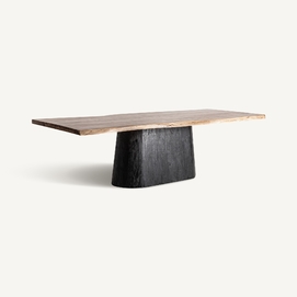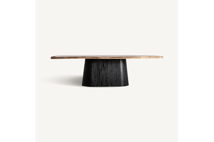 Mesa comedor, fabricado en madera de mango en color negro, combinado con madera de acacia en color marrón.