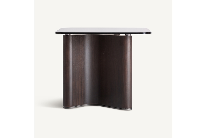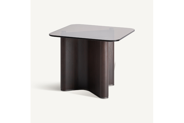 Mesa auxiliar, fabricado en madera de fresno en color negro, combinado con cristal templado en color gris.