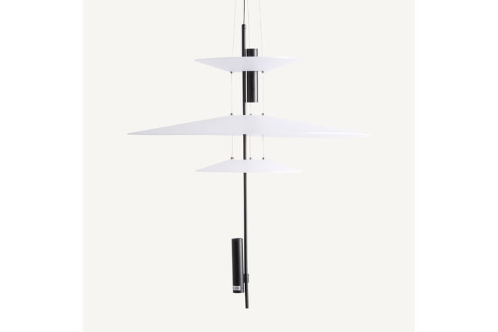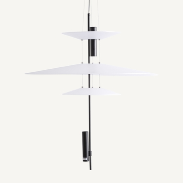 Lámpara de colgar, fabricado en acrílico en color blanco, combinado con acero en color negro.