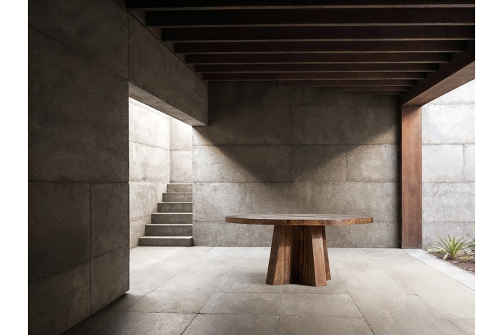 La Mesa Redonda BRUTALIST de VICALDESIGN recuerda a un altar ceremonial. Su peana en forma de cruz sostiene un sobre macizo que parece flotar, invitando a la reunión y al diálogo. Una mesa de comunidad y contemplación, donde la geometría favorece la cercanía y la conexión visual.