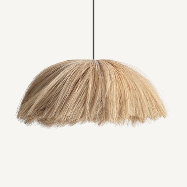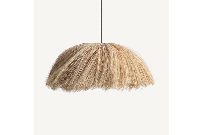 Lámpara de colgar, fabricado en hierba marina en color marrón claro, combinado con hierro en color negro.