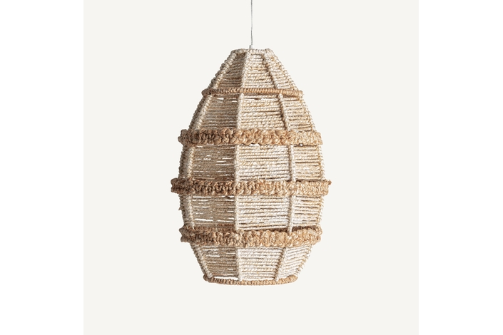 Lámpara de colgar, fabricado en yute en color beige en color blanco roto.