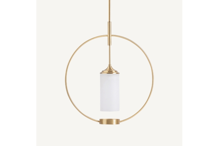 Lámpara de colgar, fabricado en cristal en color marfil, combinado con acero en color oro con acabado viejo.