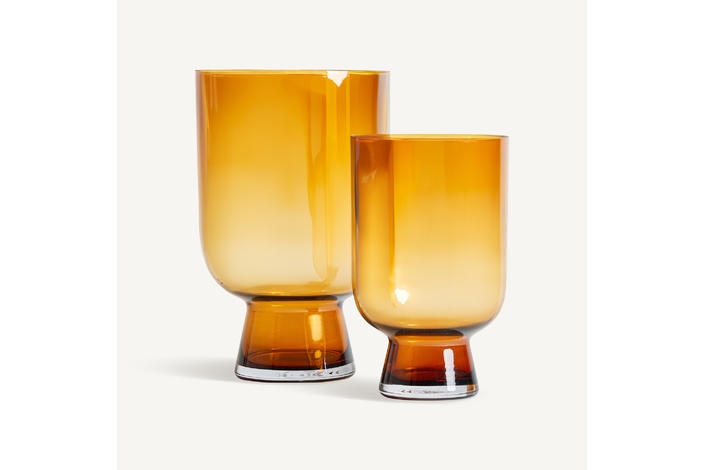 Jarrón, fabricado en vidrio en color ambar.