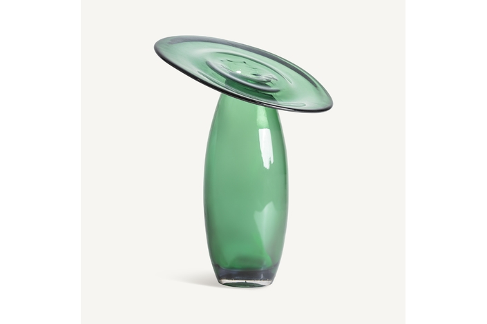 Jarrón, fabricado en vidrio en color verde.