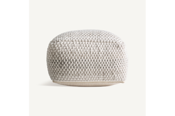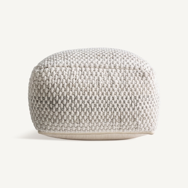 Puff, fabricado en lana en color blanco roto, combinado con espuma en color gris.