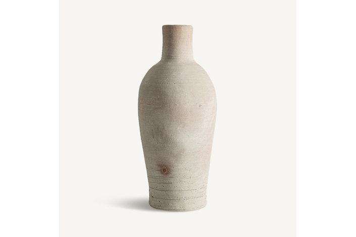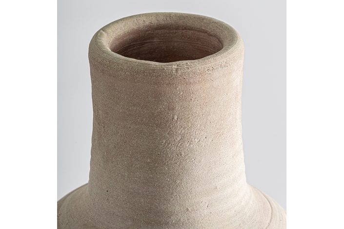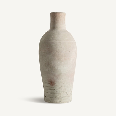 Tinaja de estilo clásico, fabricado en arcilla en color blanco roto con acabado envejecido.