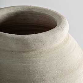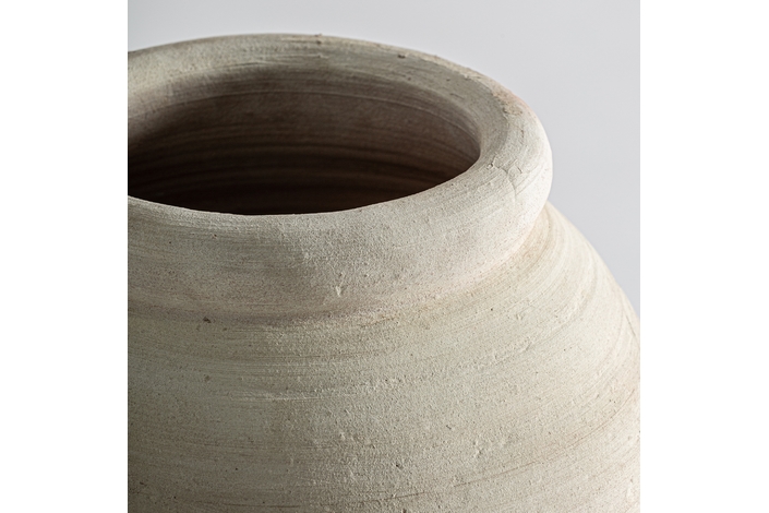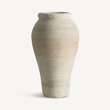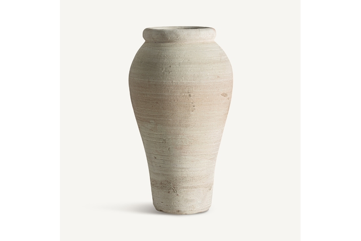 Tinaja de estilo clásico, fabricado en arcilla en color blanco roto con acabado envejecido.