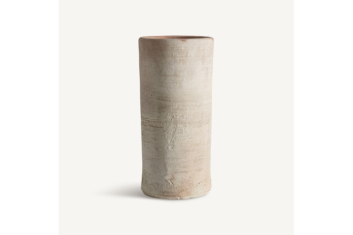 Tinaja de estilo clásico, fabricado en arcilla en color blanco roto con acabado envejecido.