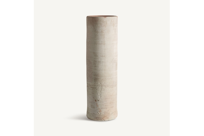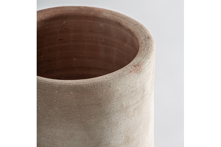 Tinaja de estilo clásico, fabricado en arcilla en color blanco roto con acabado envejecido.