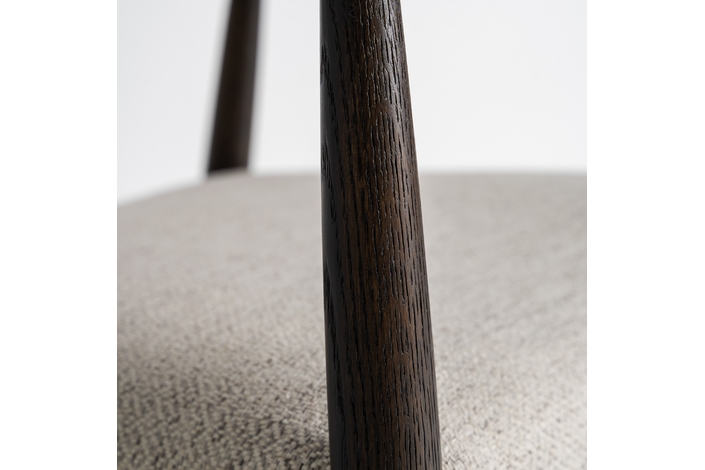 Silla, fabricado en madera de fresno en color negro, combinado con poliéster en color gris.
