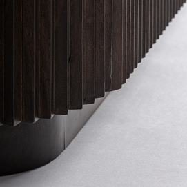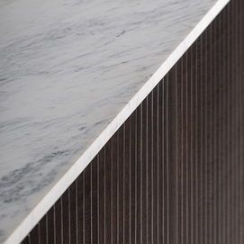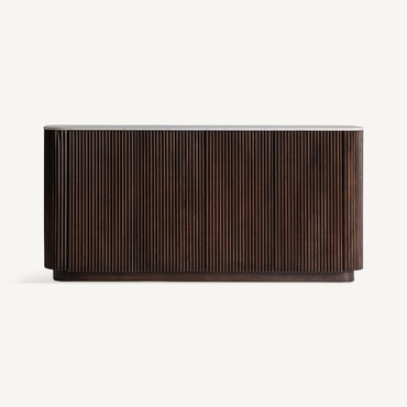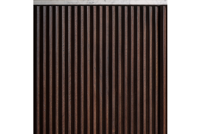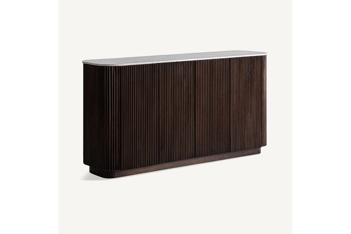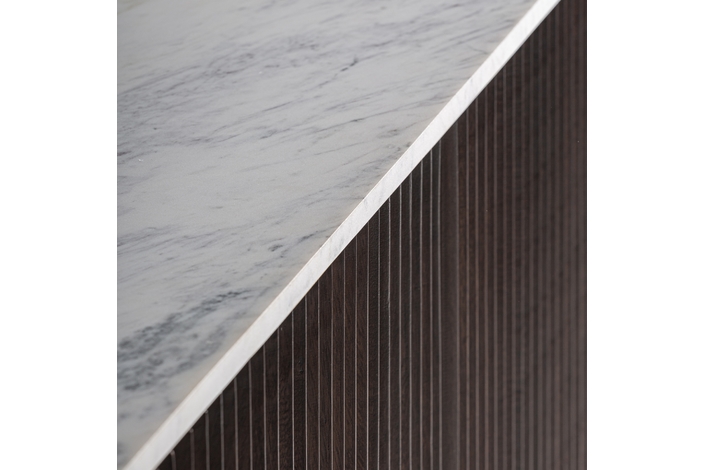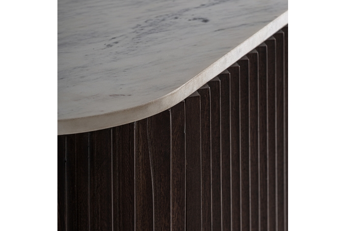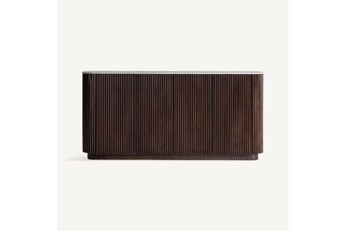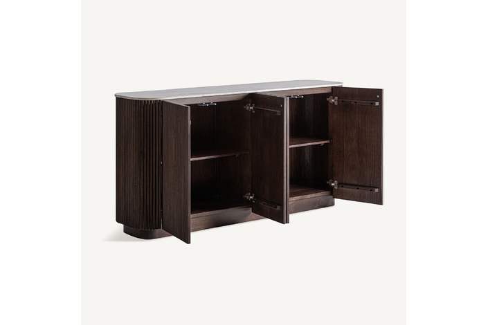 Aparador, fabricado en madera de mango en color marrón, combinado con mármol en color blanco.